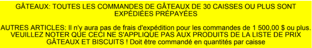 PLATEAU DES FÊTES Étiquettes (500/rlx) 1,5” de couleur Étiquettes (500/rlx) 2,5” de couleur TOTAL Plateau de service en bois avec 115gr de bar original, 225gr d’arachides enrobées de miel, 225gr d’arachides blanchies au sel et 200gr de mélange cajun @ $14.50 / unité (6 par caisse): $87.00